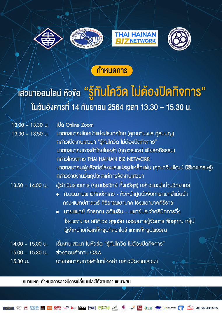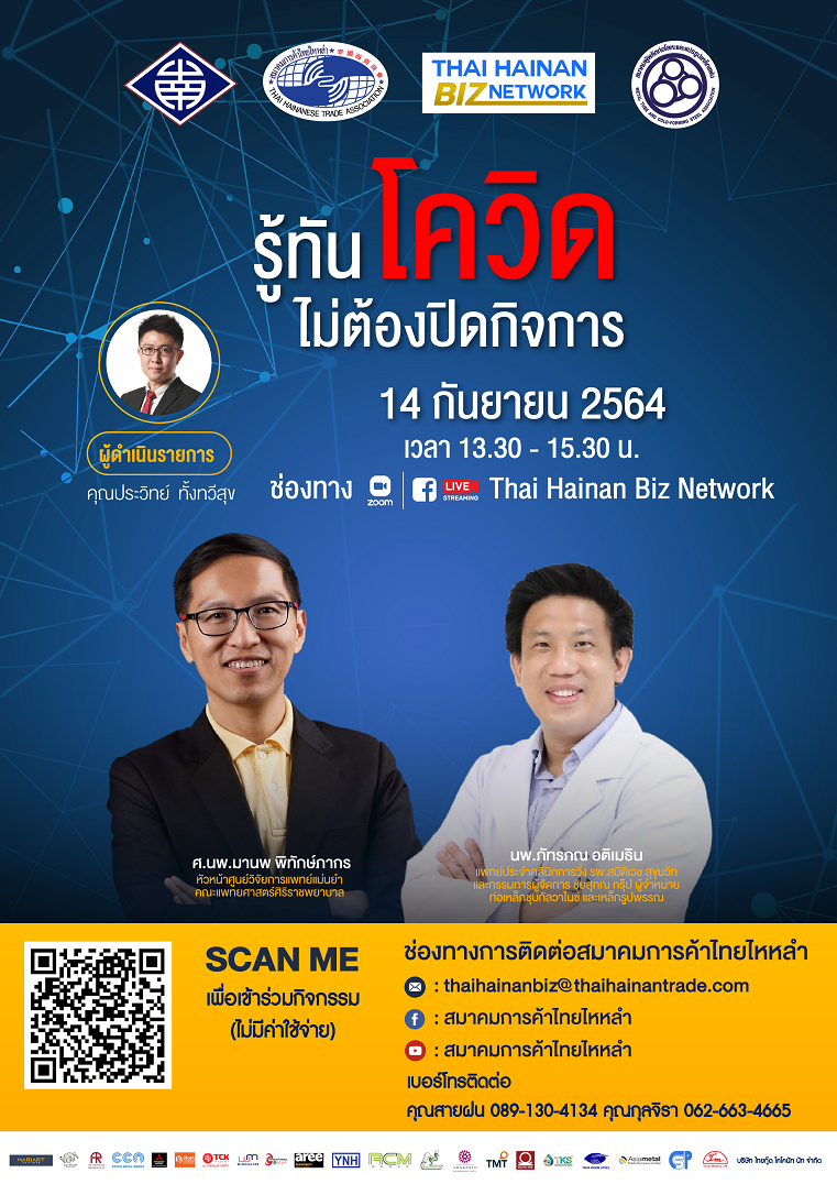 เตรียมตัวให้พร้อมกับกิจกรรมดีๆ ที่จะมาให้ความรู้เรื่องโควิด-19 มากยิ่งขึ้น กับงานเสวนาออนไลน์ "รู้ทันโควิด ไม่ต้องปิดกิจการ" ที่จะจัดขึ้นในวันที่ 14 กันยายน 2564 เวลา 13.30 - 15.30 น. เข้าร่วมกิจกรรมสแกน QR Code ด้านล่างได้เลย!