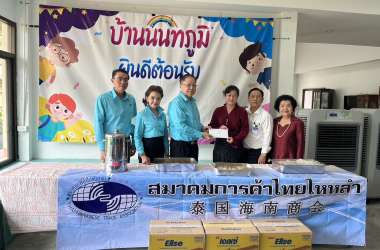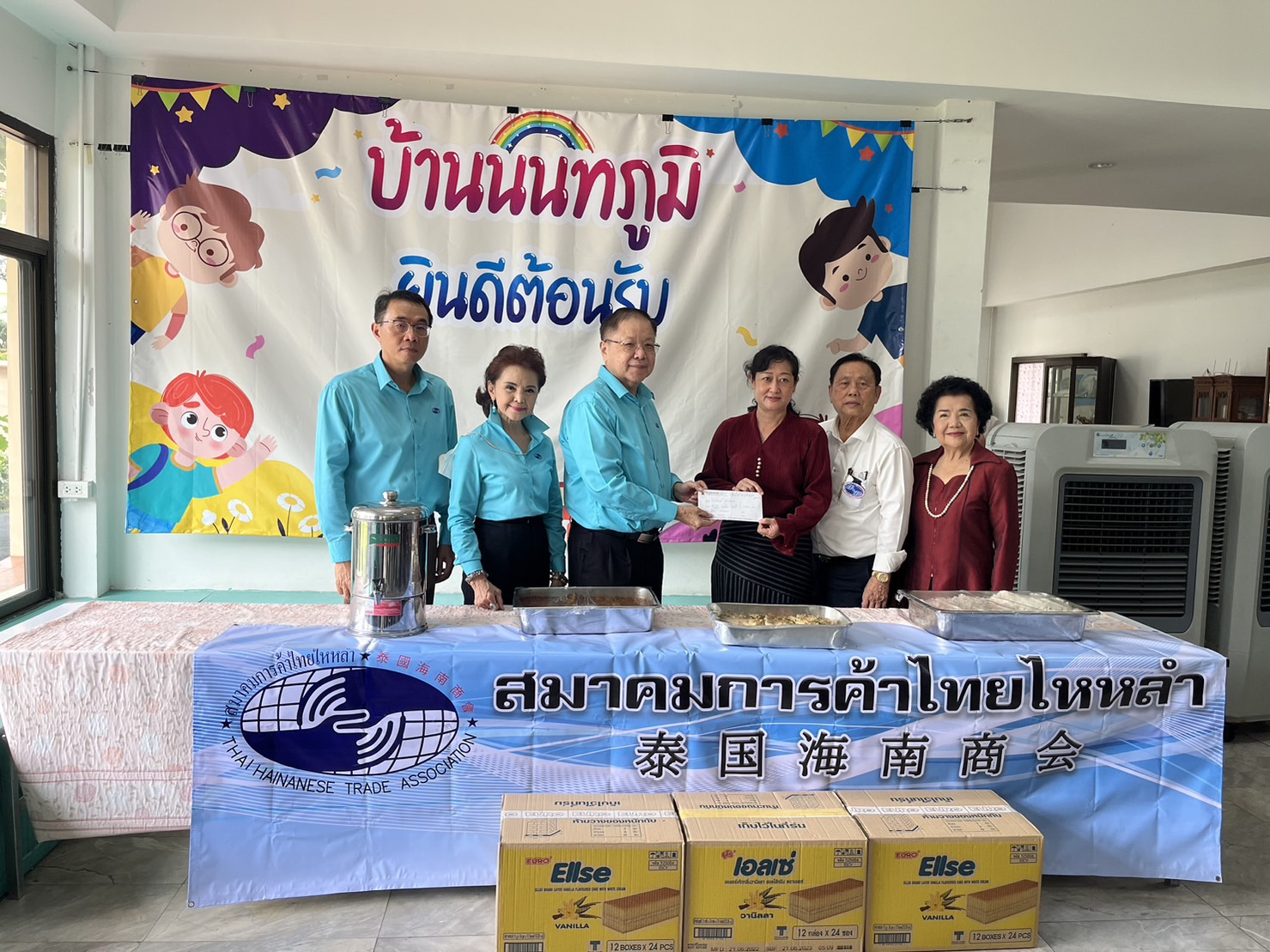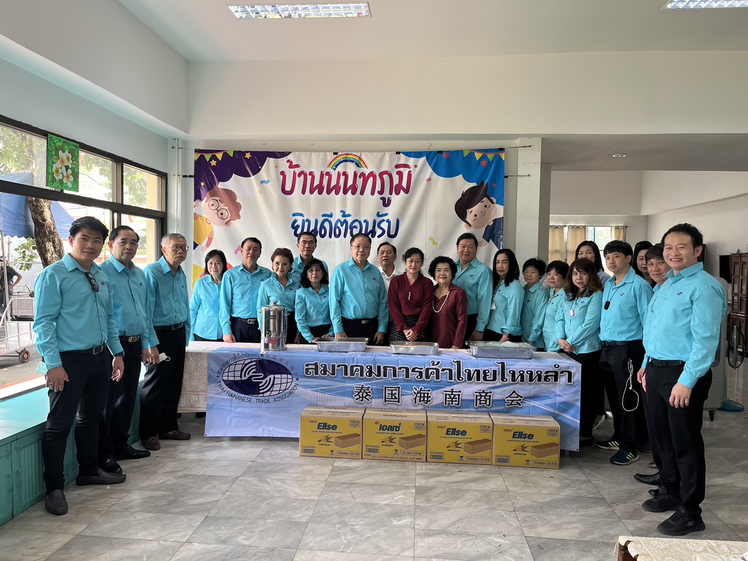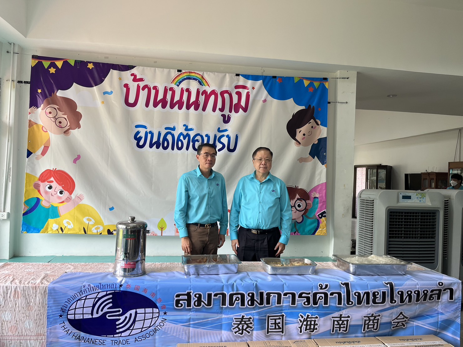 วันพฤหัสบดีที่ 6 ตุลาคม 2565 เวลา 10.00 - 11.00 น. สมาคมการค้าไทยไหหลำนำโดยท่านนายกอัชฌาธินันท์ ธรรมสามิสร ท่านไพรัช ชูธรรมขจร ท่านเลขาวิโรจน์ ไกรธีรวุฒิและคณะกรรมการ่วมกิจกรรมทำบุญเลี้ยงอาหารกลางวันเด็ก บริจาคเงินและขนม ณ สถานสงเคราะห์เด็กพิการและทุพพลภาพปากเกร็ด (บ้านนนทภูมิ)
