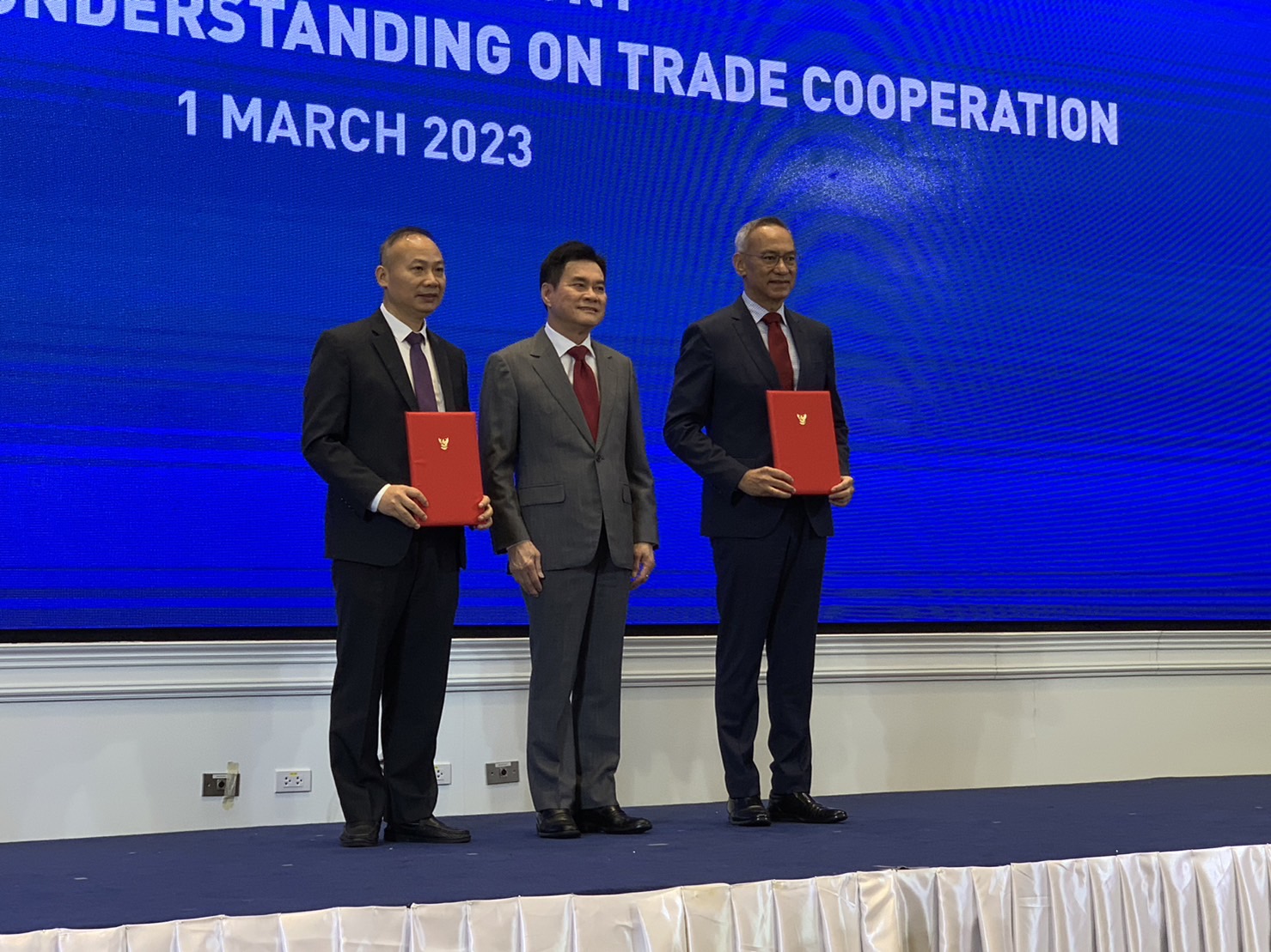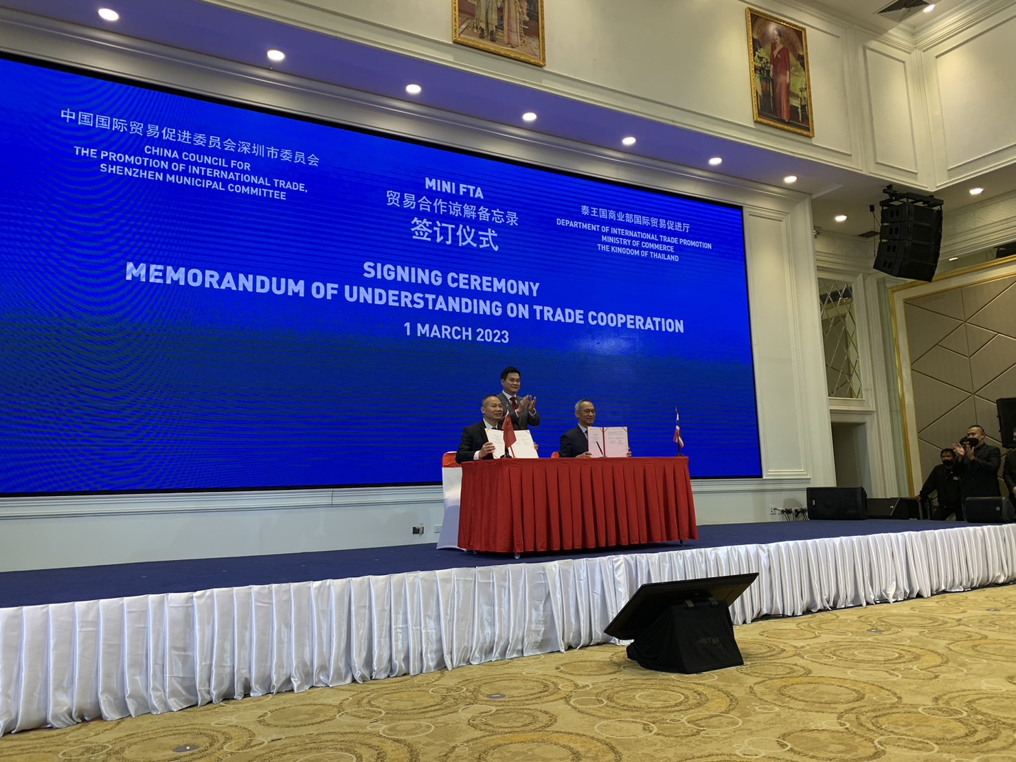 วันพุธที่ 1 มีนาคม 2566 เวลา 09.00 – 16.30 น. สมาคมการค้าไทยไหหลำ นำโดยคุณอัชฌาธินันท์ ธรรมสามิสร นายกสมาคมฯ คุณวิโรจน์ ไกรธีรวุฒิ เลขาธิการสมาคมฯ คุณกัญญา ธรรมสามิสร เข้าร่วมพิธีลงนามบันทึกความเข้าใจ (MOU) ด้านความร่วมมือทางการค้าระหว่างกรมส่งเสริมการค้าระหว่างประเทศกับสภาส่งเสริมการค้าระหว่างประเทศ แห่งชาติจีน คณะกรรมการเทศบาลเมืองเซินเจิ้น (CCPIT Shenzhen) เพื่อขยายความร่วมมือทางการค้าเชิงลึกรายมณฑลกับจีน เป้าหมายในการเซ็น (MOU) เป็นประมาณ 900,000 กว่า ล้านบาทครั้งนี้เพื่อที่จะให้เพิ่มมูลค่าการค้าระหว่างไทยกับเซินเจิ้นเ พิ่ม 5% = 43,000 ล้านบาท (เดิม 8 แสน กว่า ล้านบาท) ภายในสองปีข้างหน้า ณ ห้องบุรฉัตรไชยากร ชั้น 4 อาคารริมน้ำ กระทรวงพาณิชย์ สนามบินน้ำ