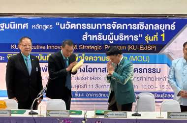 เมื่อวันศุกร์ที่ 11 สิงหาคม 2566 เวลา 10.00 - 12.00 น. โดยคุณอัชฌาธินันท์ ธรรมสามิสร นายกสมาคมการค้าไทยไหหลำ คุณวิโรจน์ ไกรธีรวุฒิ และคณะกรรมการ สมัยที่ 17 เข้าพิธีลงนามความร่วมมือความสัมพันธ์และสร้างโอกาสด้านการเกษตร (MOU) ระหว่างมหาวิทยาลัยเกษตรศาสตร์ และ สมาคมการค้าไทยไหหลำ ณ ห้องวัฒนา สวรรยาธิปัติชั้น 4 อาคารวิทยบริการสำนักส่งเสริมและฝึกอบรม มหาวิทยาลัยเกษตรศาสตร์
